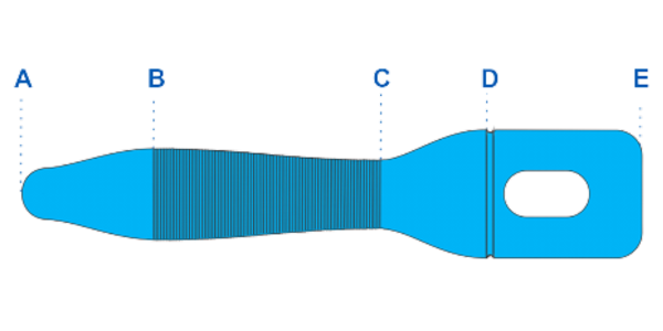 – A ponta arredondada facilita abrir o caminho e direciona a penetração.